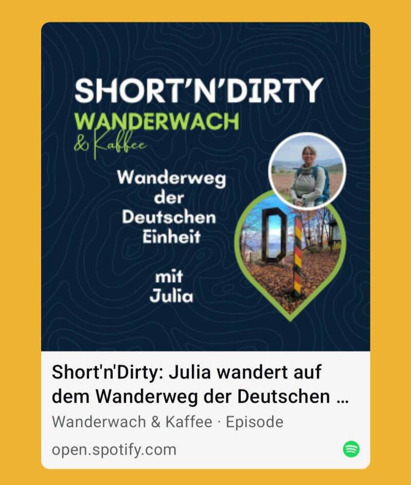 In ihrem Podcast "Wanderwach&Kaffee" lässt Mareike regelmäßig Wandernde von ihren Touren berichten. Im März 2026 durfte ich in Folge 131 vom WDE bzw. dem Barbarossaweg und dem Werra-Burgen-Steig erzählen.