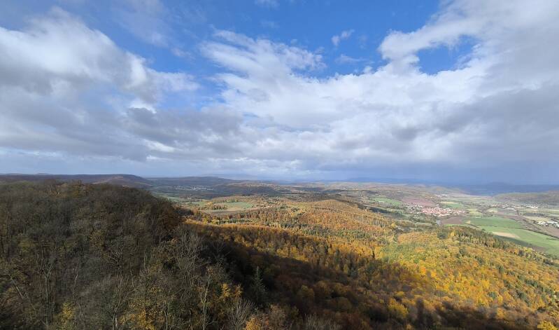 Wegen des angekündigten Herbststurms "Joschua" teilen wir die Etappe auf und wandern dieses Teilstück in umgekehrter Reihenfolge. Nachdem wir in Creuzburg aufgeben, hole ich mir auf der Wetterapp die Bestätigung, dass das die einzig richtige Entscheidung war :-). Wenigstens ist Luftqualität top.